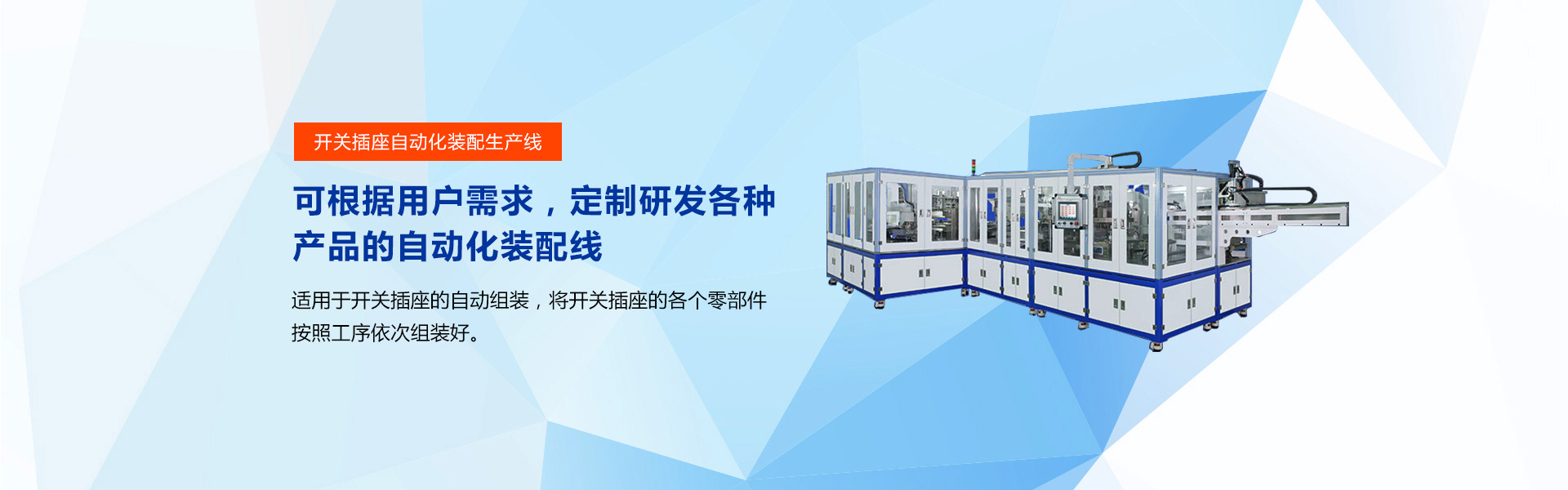 針對(duì)3C電子行業(yè)提供各種非標(biāo)自動(dòng)化設(shè)備制定方案,提高生產(chǎn)效率,協(xié)助企業(yè)機(jī)器換人。研發(fā)生產(chǎn)的設(shè)備有:信號(hào)分配器自動(dòng)組裝機(jī),U盤(pán)組裝機(jī),變壓器骨架插針機(jī),LED切腳組裝機(jī),充電器組裝機(jī),電源適配器屏蔽鋁殼鉚PIN機(jī),航空插座組裝機(jī),電池支架組裝機(jī),電動(dòng)牙刷組裝機(jī),麥拉成型機(jī),電機(jī)支架自動(dòng)組裝機(jī)等。