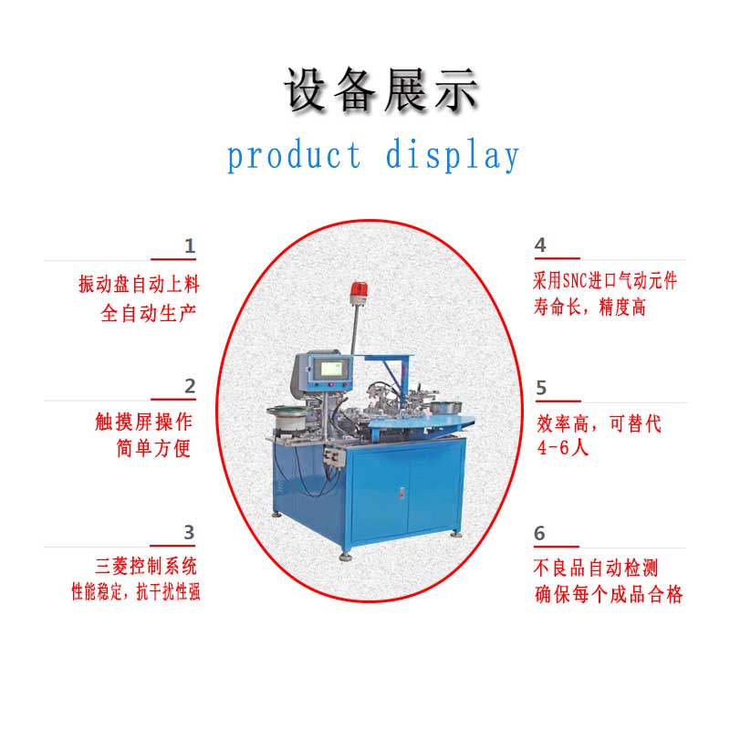 4:人工只需補(bǔ)充物料,設(shè)備自動依次完成各工序組裝,并自動下料