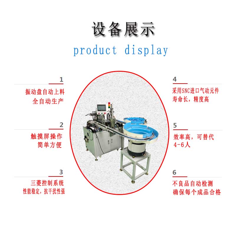 4:人工只需補(bǔ)充物料,設(shè)備自動依次完成各工序組裝,并自動下料