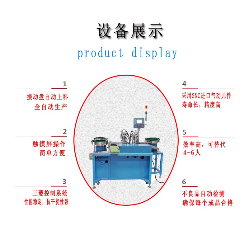 1:插座母座自動組裝彈片插腳機采用氣缸為動力,PLC可編程控制器,直觀分站式裝配工作原理