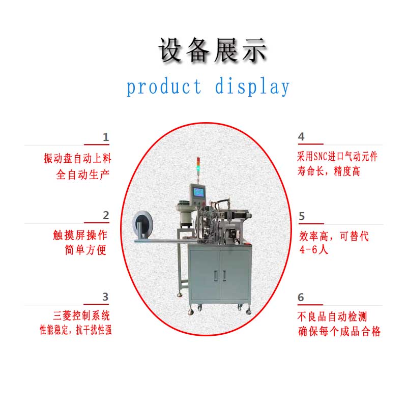 4:人工只需補(bǔ)充物料,設(shè)備自動依次完成各工序組裝,并自動下料